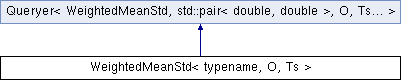 Public Member Functions inherited from Queryer< WeightedMeanStd, std::pair< double, double >, O, Ts... > | |